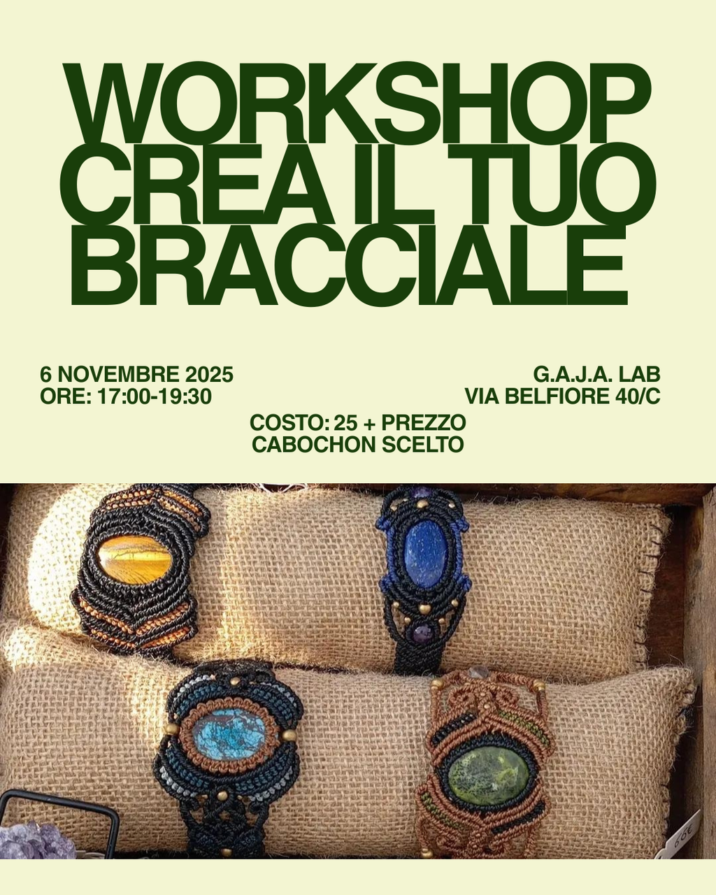 In 2 ore e mezza – 3 ore imparerai i nodi base, sceglierai le tue pietre, e tornerai a casa con un gioiello unico, fatto interamente da te.